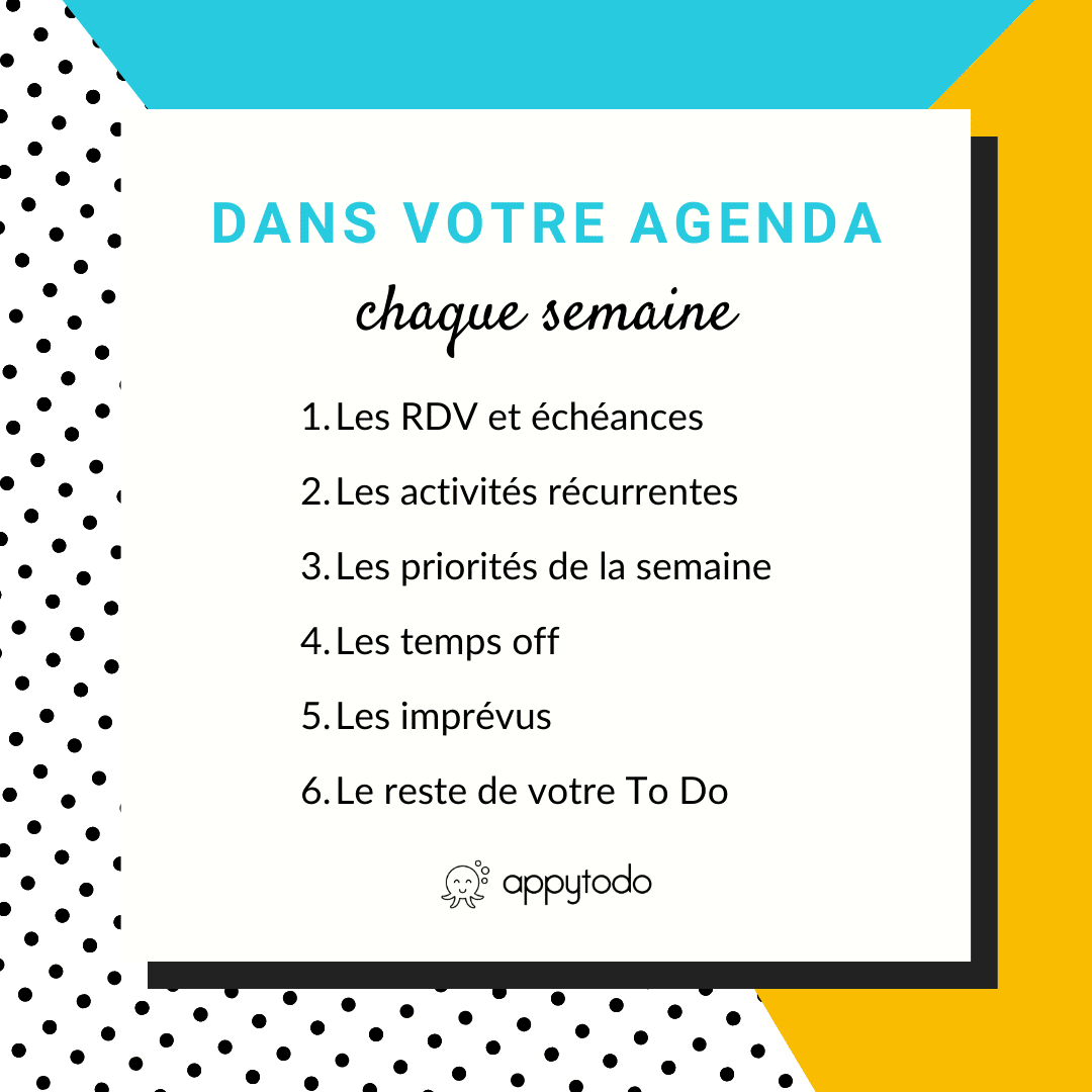 Bien sûr, il est conseillé de tout mettre dans son agenda, mais attention quand même à ne pas « surplanifier ».